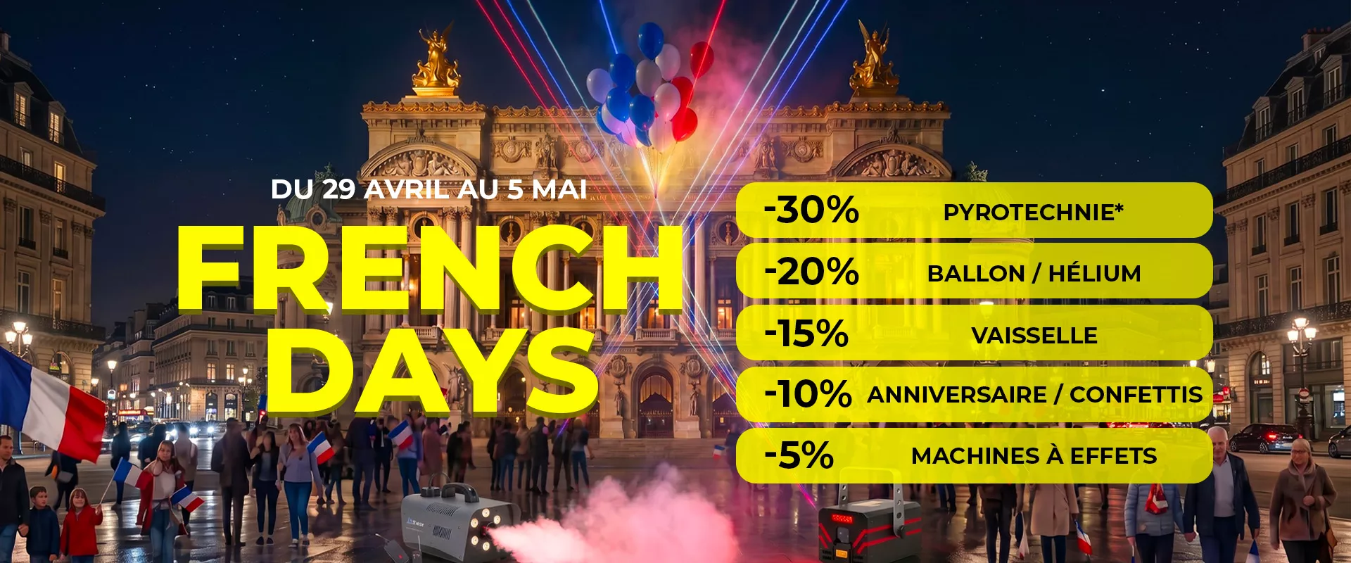 France Effect vous propose une large gamme d'articles de fête pour réussir vos fêtes et soirées à thème.