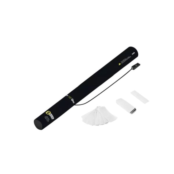 Canon à confettis électrique 40 cm coloris au choix (blanc ou multicolore). Portée jusqu’à 10 m, papier ignifugé biodégradable. Idéal pour événements professionnels et animations.
