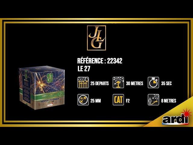 Découvrez le compact JLG SIGNATURE® N°27, une création élégante et raffinée signée Jean-Laurent GRUAZ. Ce modèle de Catégorie F2 offre un spectacle époustouflant en délivrant 25 coups en seulement 35 secondes.