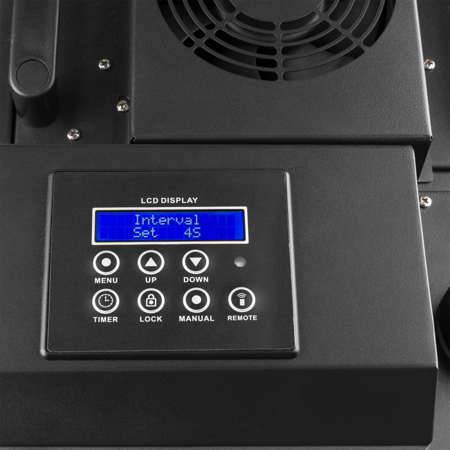 La LF1400 est conçue pour une utilisation facile et pratique. Elle peut être contrôlée via l'affichage numérique intégré ou par DMX, offrant une grande flexibilité pour différents types d'événements. La puissance et la vitesse du ventilateur sont réglables, permettant de créer l'effet de fumée désiré. Grâce à son boîtier en métal solide et ses roulettes, elle est durable et facile à déplacer.