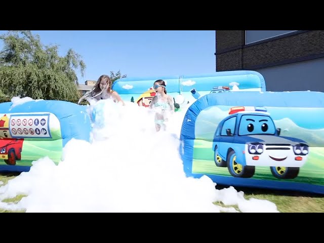La piscine à mousse à thème voiture permet de créer de la mousse à volonté grâce à un distributeur intégré à l'arrière. Ce système pratique est facilement contrôlable par l'utilisateur, qui peut ouvrir ou fermer le distributeur de mousse pour ajuster la quantité de mousse dans le parc.